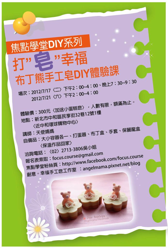 【手工皂體驗課程】Dear 布丁熊皂 體驗課程 資訊